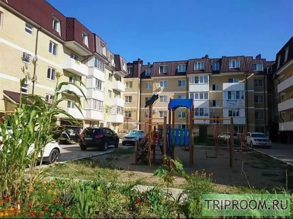 Свободная парковка у дома, уютный зеленый двор с детской площадкой.